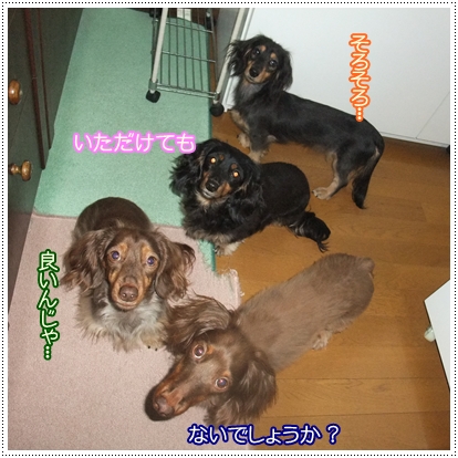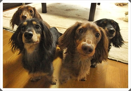 そうとも知らず?目をランランと輝かせマテをするごえさく一家♪